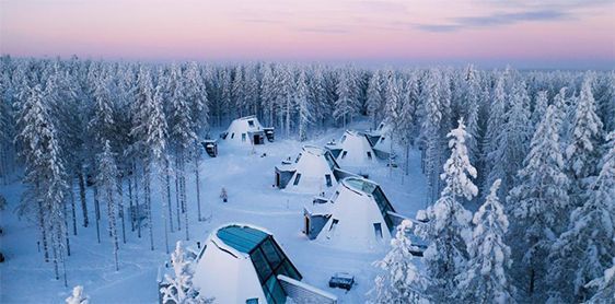 [su_icon_text icon=»icon: hotel» icon_color=»#76f6ad» icon_size=»20″ target=»self»]Estos iglús con techo de cristal están situados en el círculo polar ártico, a 30 minutos en coche del centro de Rovaniemi. Cada uno de ellos tiene calefacción radiante y techo de cristal con aislamiento térmico y vistas al cielo. Alberga un bar de hielo y 3 restaurantes. El Arctic SnowHotel & Glass Igloos es el hotel burbuja ideal para ver la aurora boreal. De hecho, hasta te avisan desde recepción cuando se puede ver..[/su_icon_text]